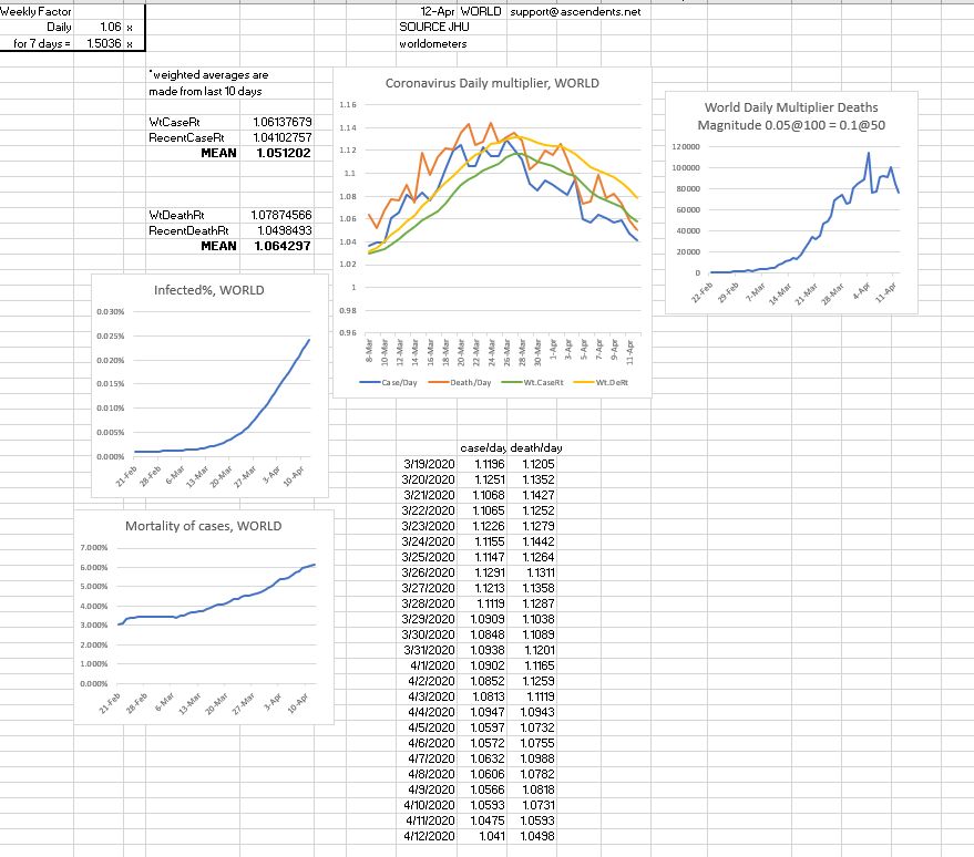 In recent days worldwide cases have been increasing by 1.1 and deaths have been increasing at around 1.13, however; even though some places reported less then 1.05 daily growrth, in past recent days some states cases have increased by close to 1.5. Oftentimes, it's around 1.1.