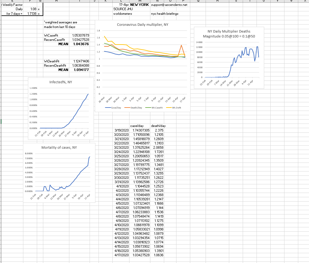 In recent days worldwide cases have been increasing by 1.1 and deaths have been increasing at around 1.13, however; even though some places reported less then 1.05 daily growrth, in past recent days some states cases have increased by close to 1.5. Oftentimes, it's around 1.1.
