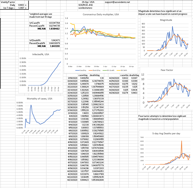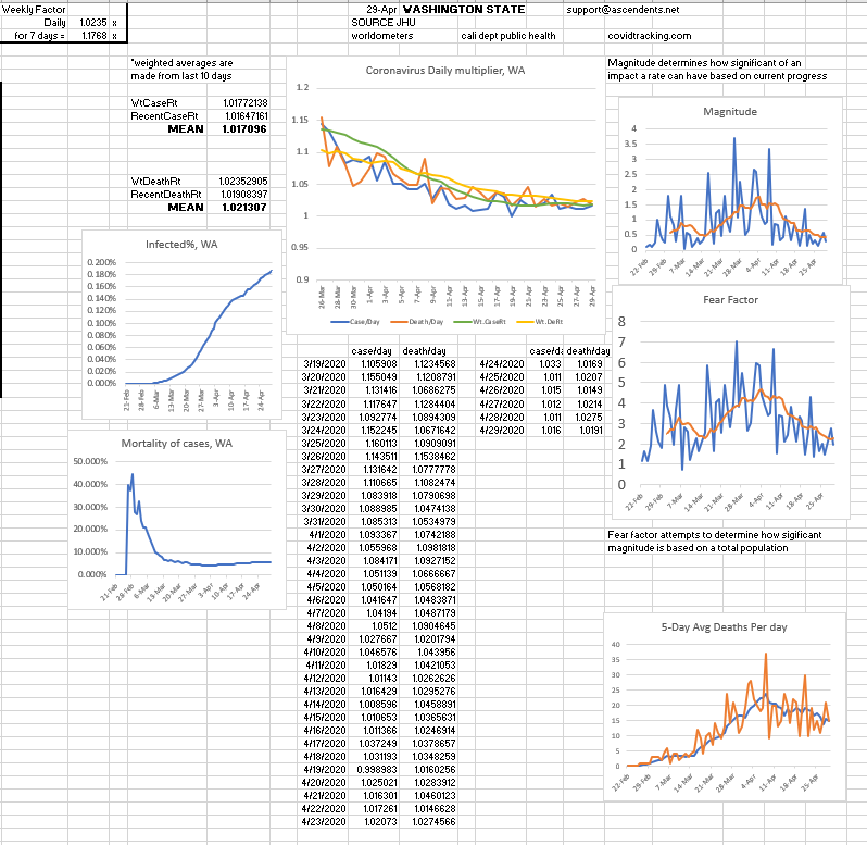 In recent days worldwide cases have been increasing by 1.05 and deaths have been increasing at around 1.03, however; even though some places reported less then 1.03 daily growrth, in past recent days some states cases have increased by close to 1.08. Oftentimes, it's around 1.05.