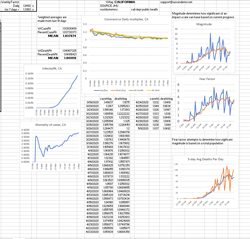 In recent days worldwide cases have been increasing by 1.05 and deaths have been increasing at around 1.03, however; even though some places reported less then 1.03 daily growrth, in past recent days some states cases have increased by close to 1.08. Oftentimes, it's around 1.05.