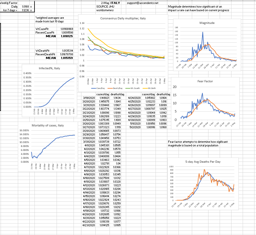 ^ Italy continues to gain control over virus' growth rate, which has fallen below 1.03, and now is slightly more than 1.02.