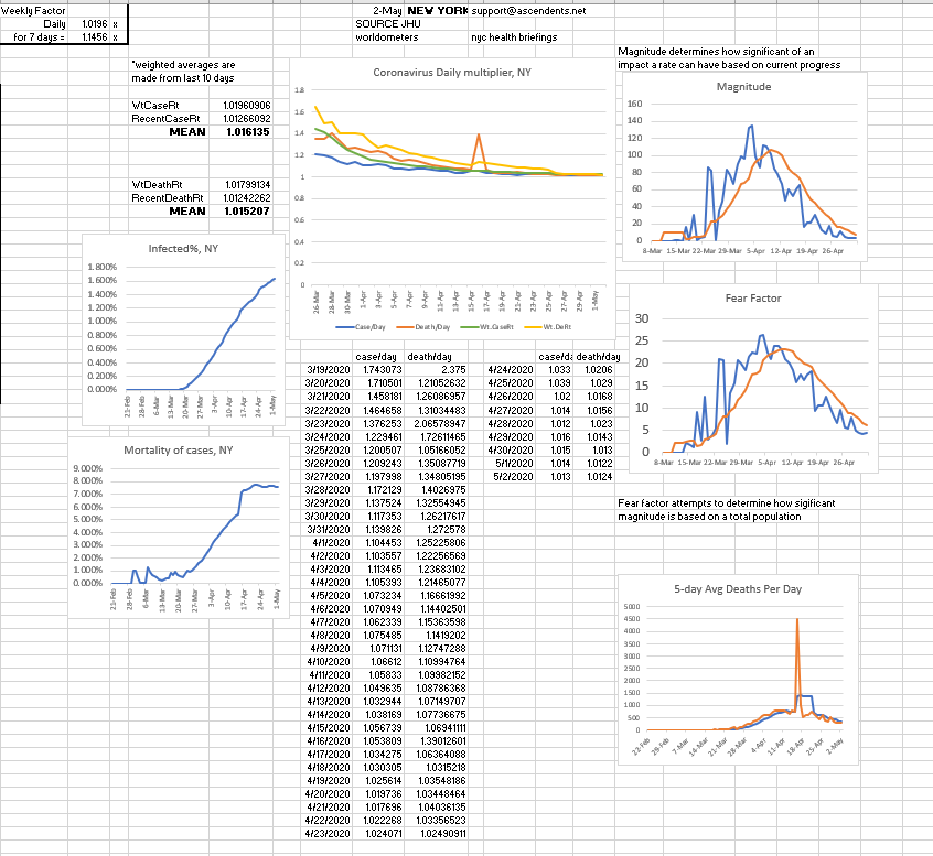 In recent days worldwide cases have been increasing by 1.05 and deaths have been increasing at around 1.03, however; even though some places reported less then 1.03 daily growrth, in past recent days some states cases have increased by close to 1.08. Oftentimes, it's around 1.05.