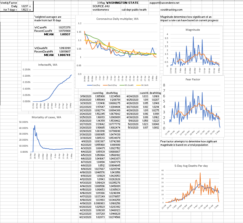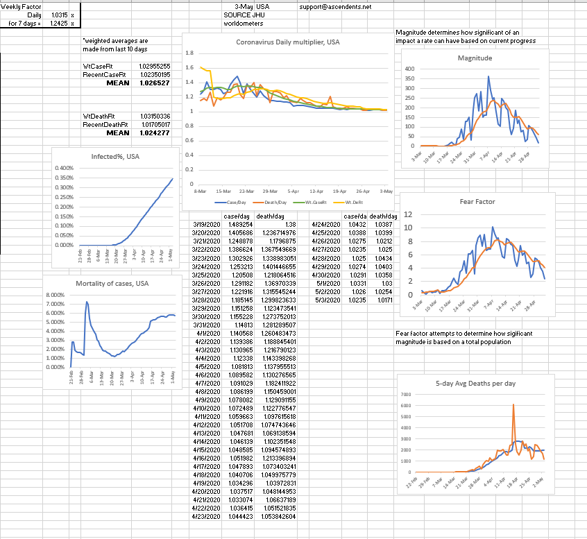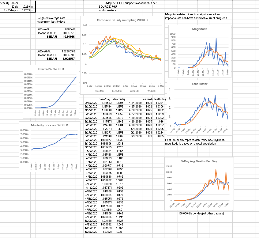 In recent days worldwide cases have been increasing by 1.05 and deaths have been increasing at around 1.03, however; even though some places reported less then 1.03 daily growrth, in past recent days some states cases have increased by close to 1.08. Oftentimes, it's around 1.05.