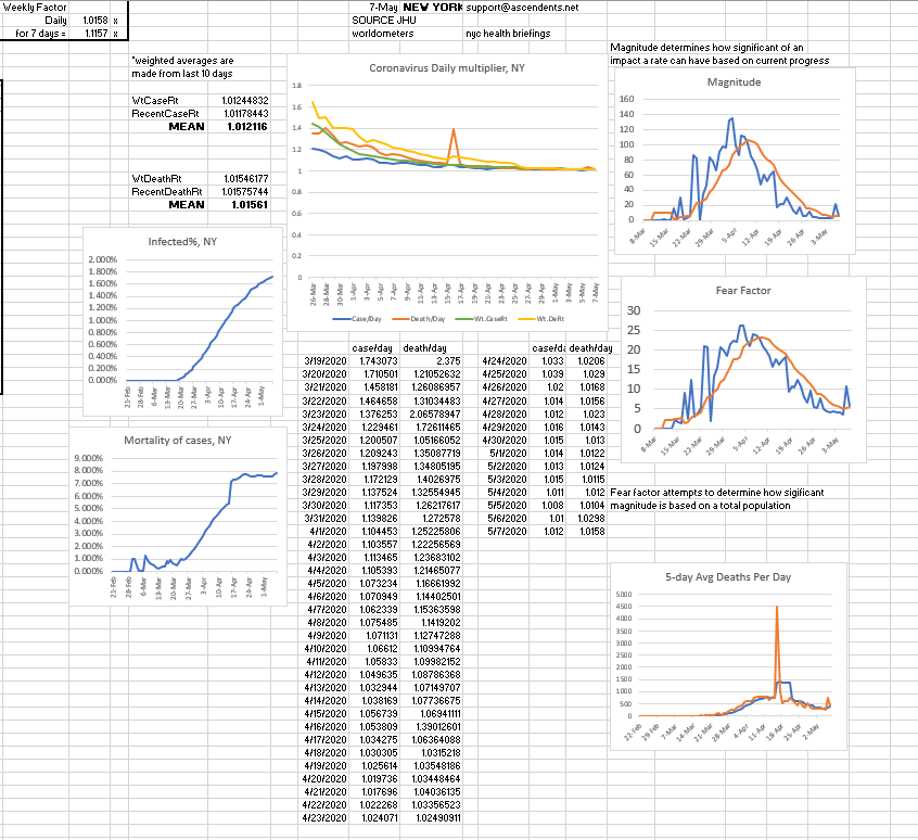 In recent days worldwide cases have been increasing by 1.03 and deaths have been increasing at around 1.03, however; even though some places reported less then 1.01 daily growth, in past recent days some states cases have increased by close to 1.05. Oftentimes, it's around 1.03.